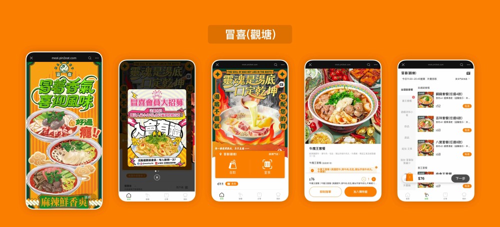 | 冒喜(觀塘) | 麻辣湯 / 自選鍋 | 漫畫風開屏視覺、自由配搭菜單模型、品牌色一體化 | 手機頁面高度還原品牌個性,又能流暢處理多步驟選料流程。 |