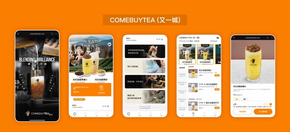 | COMEBUYTEA | 手搖茶飲 | 首屏活動 Banner、多層飲品規格選項、熱銷標籤與排序 | 複雜客製流程被壓縮成簡單數步,同時強推季節新品與人氣 TOP 系列。 |